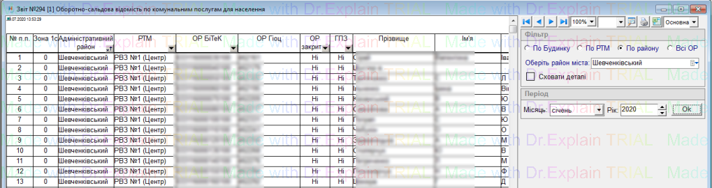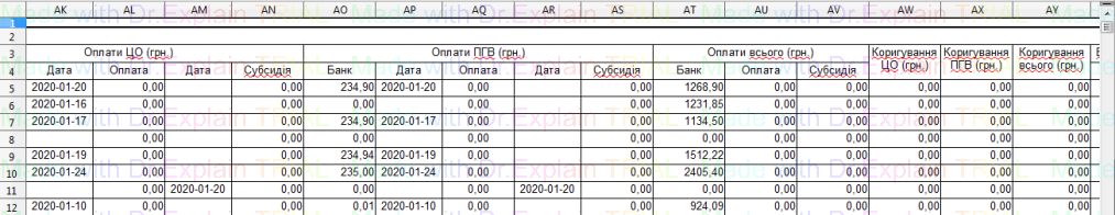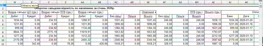 294 Оборотно-сальдова відомість по комунальним послугам для населення