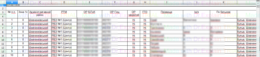 522 Звіт по залишках по населенню в розрізі послуг та періодів на кінець місяця
