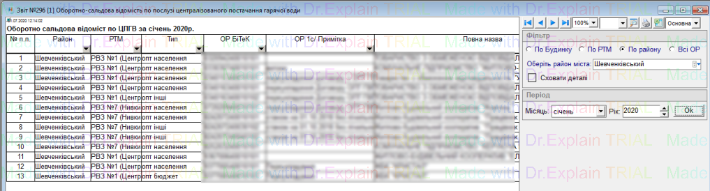 296 Оборотно-сальдова відомість по послузі централізованого постачання гарячої води