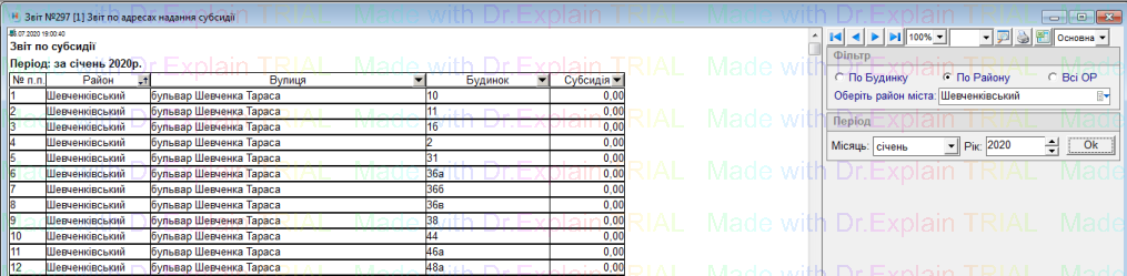 297 Звіт по адресах надання субсидії