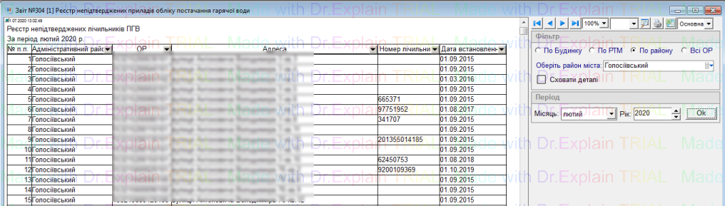 304 Реєстр непідтверджених приладів обліку постачання гарячої води (не опломбовані)