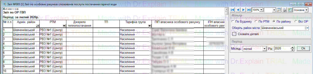 305 Звіт по особових рахунках споживачів послуги постачання гарячої води