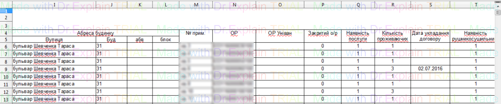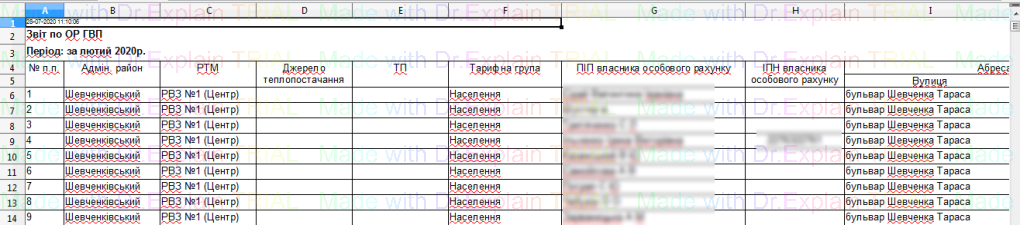 Звіт по особових рахунках споживачів послуги постачання гарячої води (кількість мешканців, договір, наявність рушникосушарок тощо)