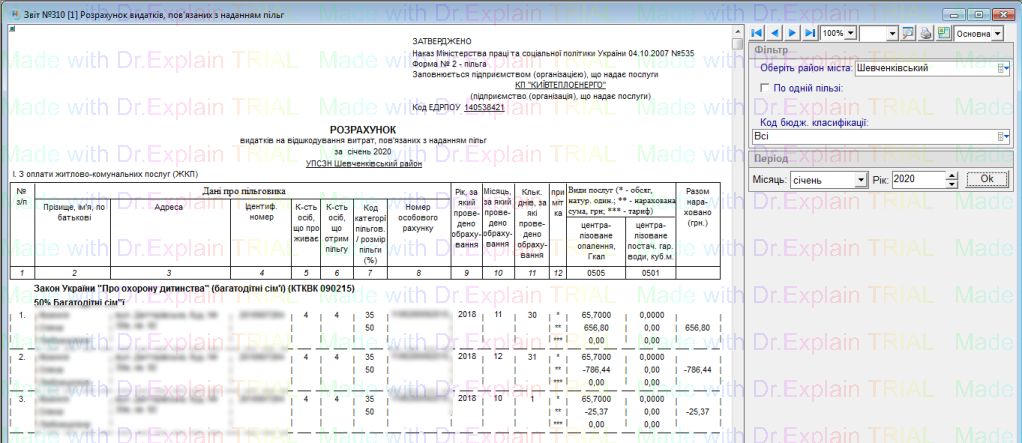 310 Розрахунок видатків, пов'язаних з наданням пільг