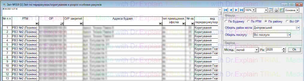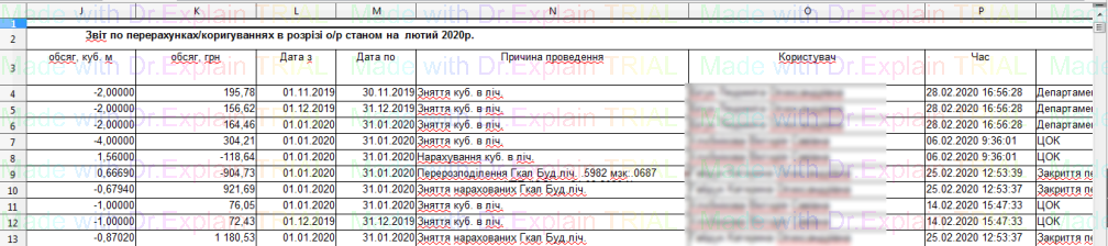 Звіт по перерахунках/коригуваннях в розрізі особових рахунків