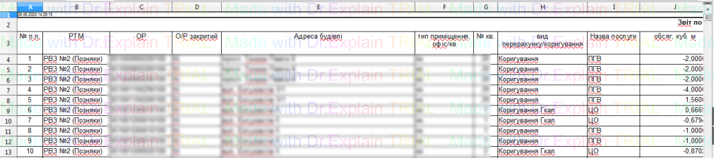 519 Звіт про нарахування за послугу з постачання теплової енергії по періодам