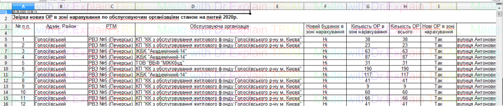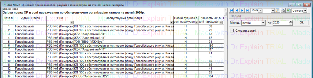 Довідка про нові особові рахунки станом на певний період (до моменту віднесення їх до зони нарахувань, в розрізі обслуговуючих організацій)