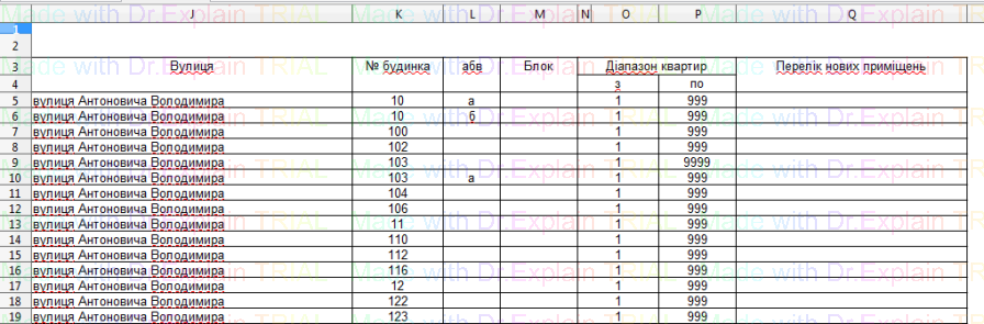 321 Звіт про наявність санітарних приладів по вбудованим приміщенням