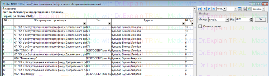 326 Звіт по об'єктах споживання послуг в розрізі обслуговуючих організацій