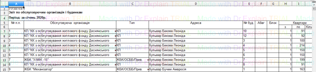 321 Звіт про наявність санітарних приладів по вбудованим приміщенням