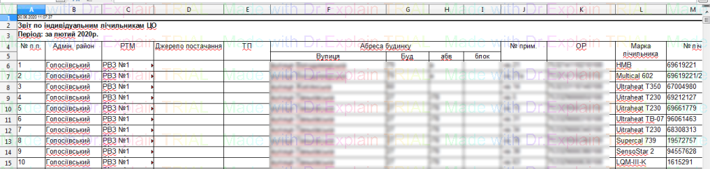 331 Звіт по індивідуальних приладах обліку постачання теплової енергії