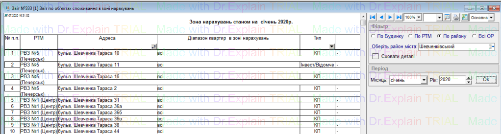 333 Звіт по об'єктах споживання в зоні нарахувань (діапазони квартир)