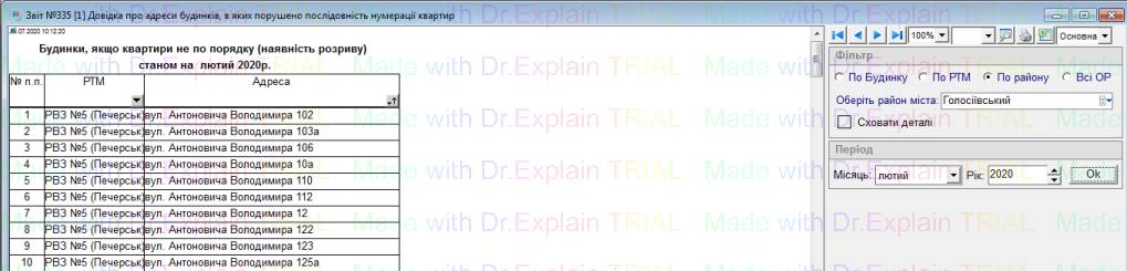 Довідка про адреси будинків, в яких порушено послідовність нумерації квартир (наявність розриву в нумерації)