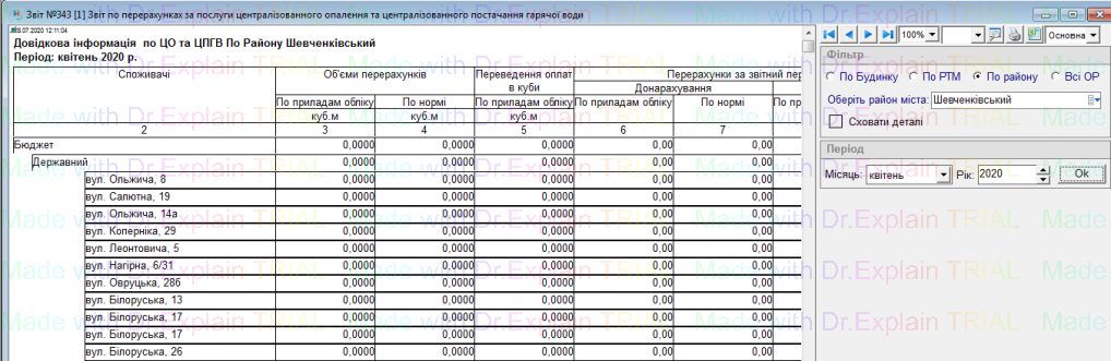 519 Звіт про нарахування за послугу з постачання теплової енергії по періодам