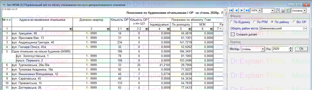346 Порівняльний звіт по обсягу споживання послуги централізованного опалення