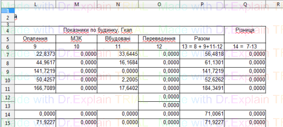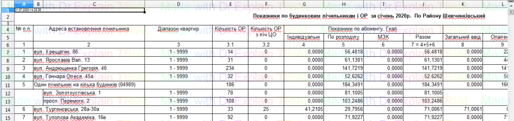 519 Звіт про нарахування за послугу з постачання теплової енергії по періодам