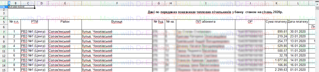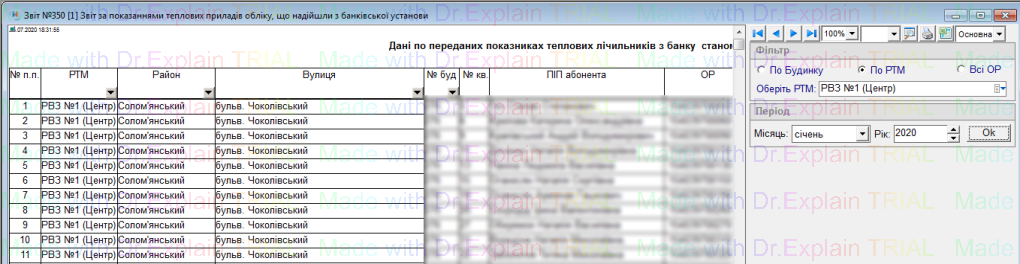 350 Звіт за показаннями теплових приладів обліку, що надійшли з банківської установи