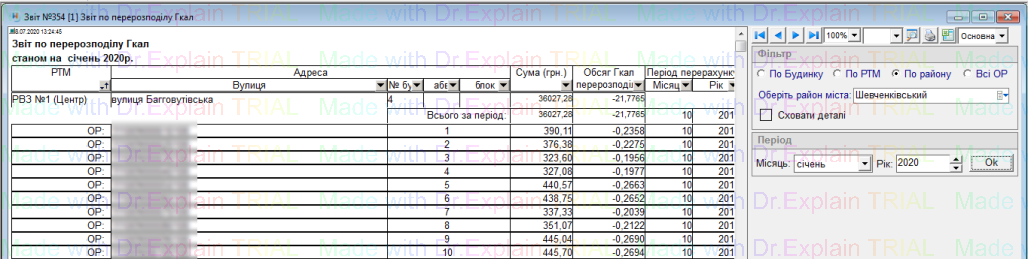 354 Звіт по перерозподілу Гкал