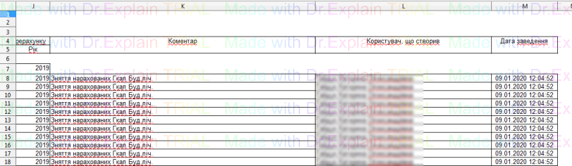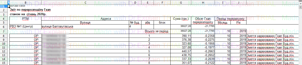 519 Звіт про нарахування за послугу з постачання теплової енергії по періодам
