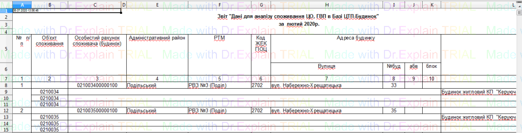 Звіти по будинкам/котельням