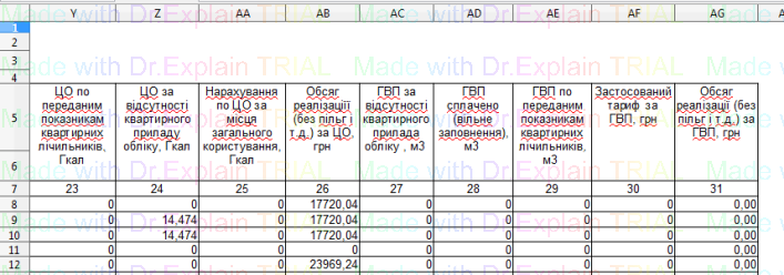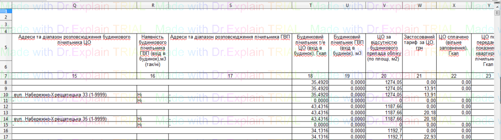519 Звіт про нарахування за послугу з постачання теплової енергії по періодам