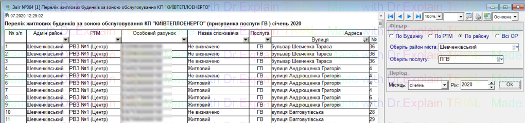 364 Перелік житлових будинків за зоною обслуговування КП "КИЇВТЕПЛОЕНЕРГО"