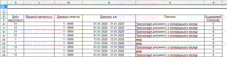 519 Звіт про нарахування за послугу з постачання теплової енергії по періодам