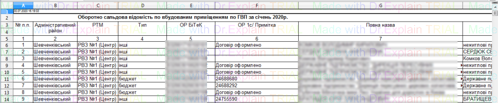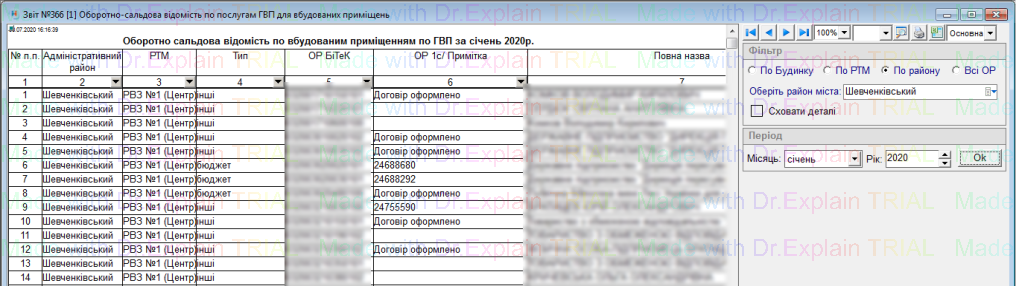 321 Звіт про наявність санітарних приладів по вбудованим приміщенням