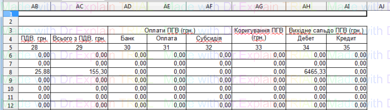 366 Оборотно-сальдова відомість по послугам ГВП для вбудованих приміщень