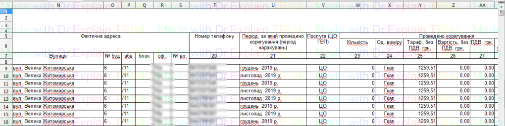 519 Звіт про нарахування за послугу з постачання теплової енергії по періодам