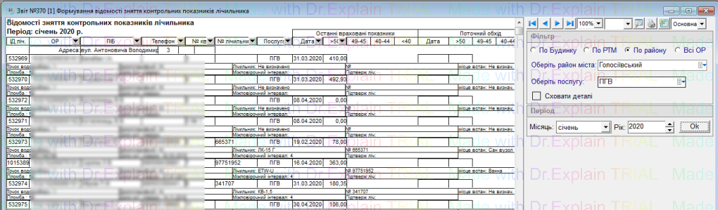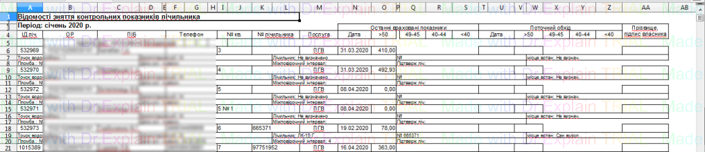 387 Формування даних по приладах обліку ПГВ для Водоканалу (формат CSV, DBF)