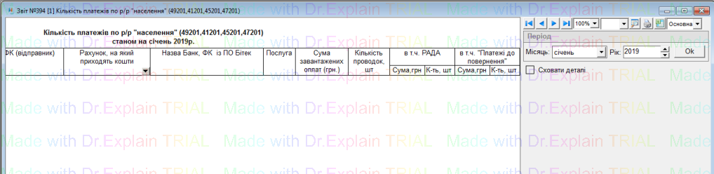 394 Кількість платежів по р/р "населення" (49201,41201,45201,47201)