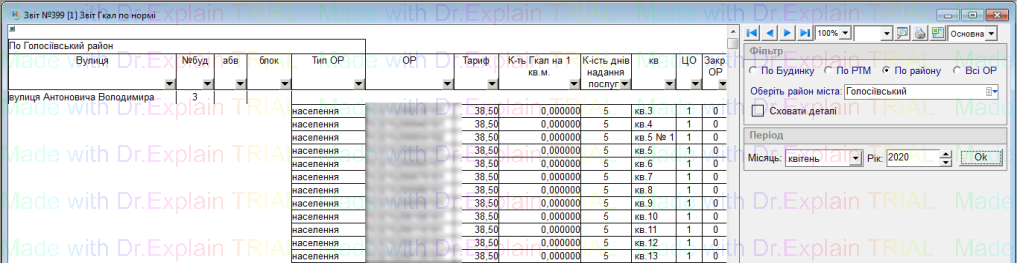 519 Звіт про нарахування за послугу з постачання теплової енергії по періодам
