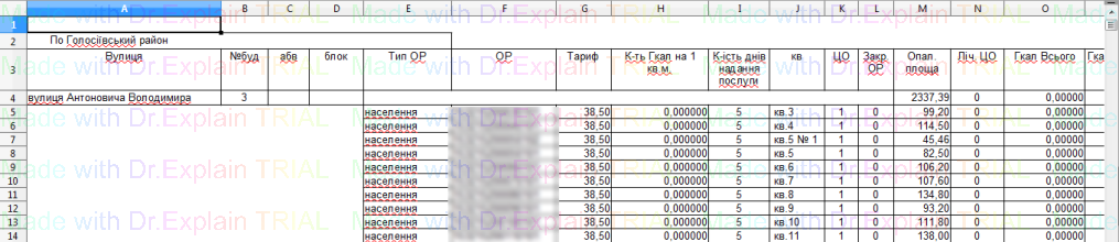 341 Звіт по особових рахунках щодо яких відбулися зміни опалювальної площі в певний період