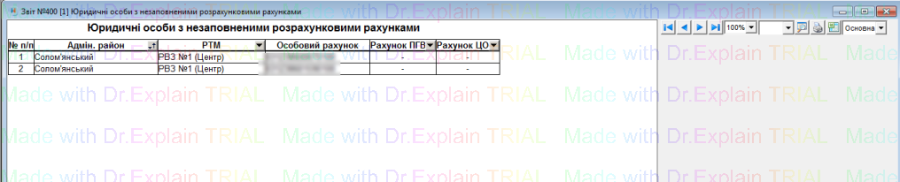 400 Юридичні особи з незаповненими розрахунковими рахунками на поточний момент