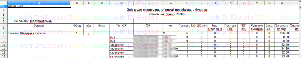 341 Звіт по особових рахунках щодо яких відбулися зміни опалювальної площі в певний період
