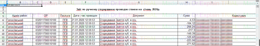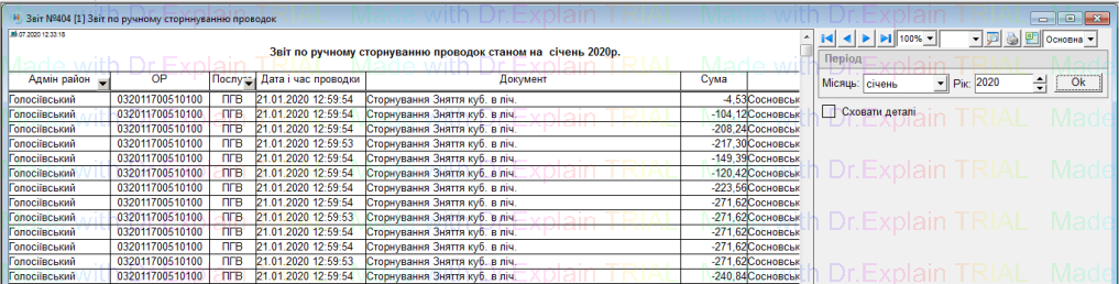 519 Звіт про нарахування за послугу з постачання теплової енергії по періодам