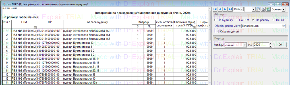 519 Звіт про нарахування за послугу з постачання теплової енергії по періодам