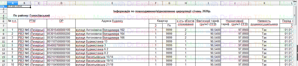 520 Звіт про нарахування за послугу з постачання теплової енергії за тарифними групами споживачам