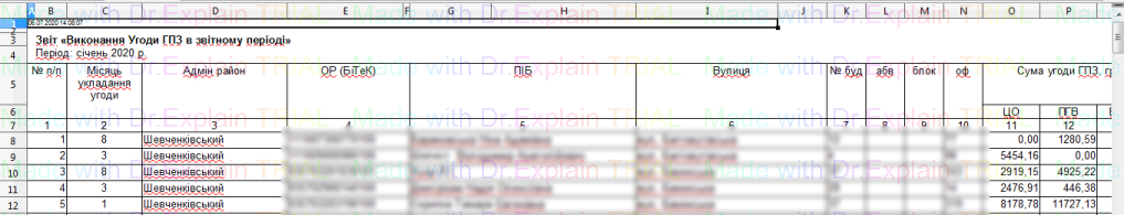 341 Звіт по особових рахунках щодо яких відбулися зміни опалювальної площі в певний період