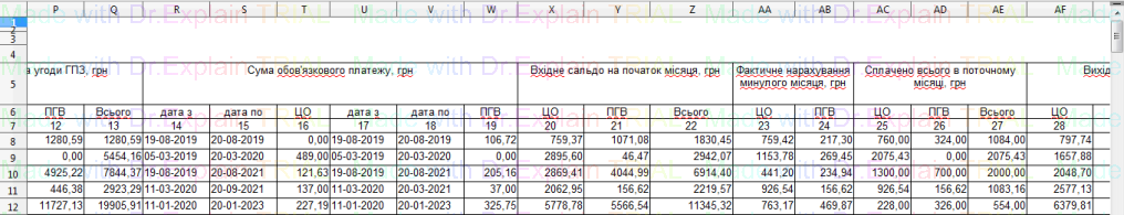 519 Звіт про нарахування за послугу з постачання теплової енергії по періодам