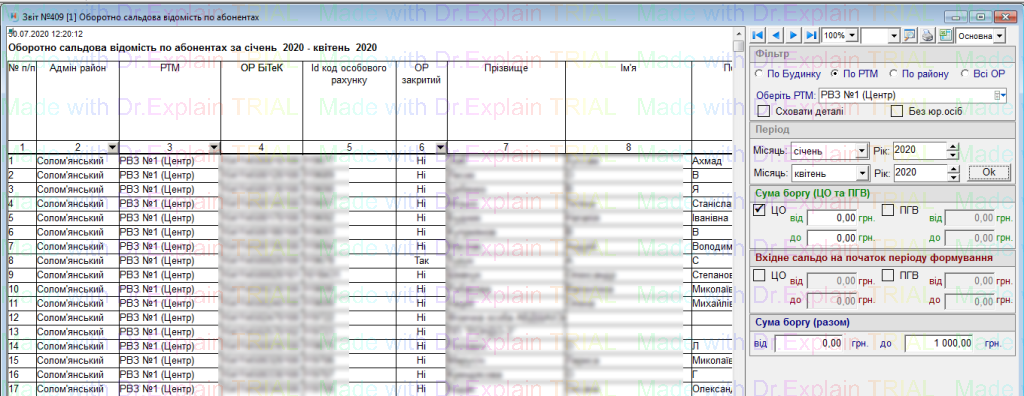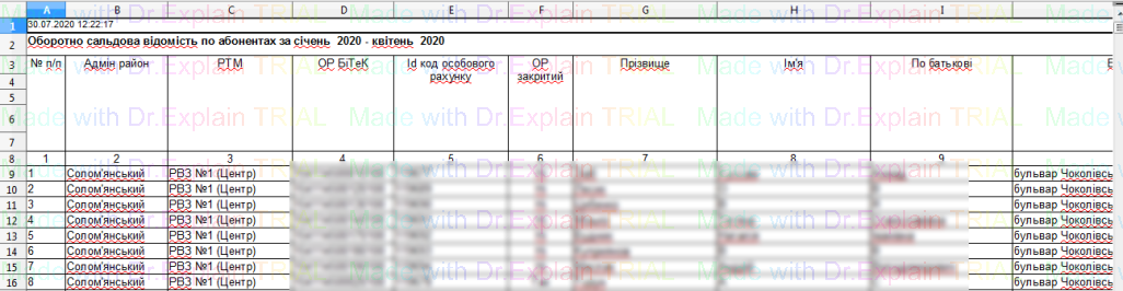 522 Звіт по залишках по населенню в розрізі послуг та періодів на кінець місяця