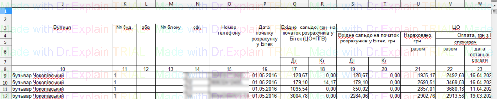 341 Звіт по особових рахунках щодо яких відбулися зміни опалювальної площі в певний період