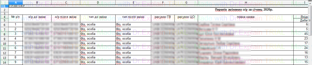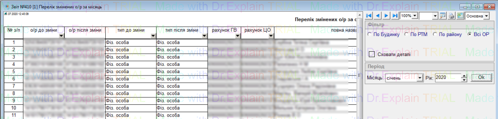 410 Перелік змінених о/р за місяць