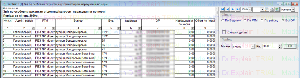 413 Звіт по особовим рахункам з ідентифікатором нарахування по нормі