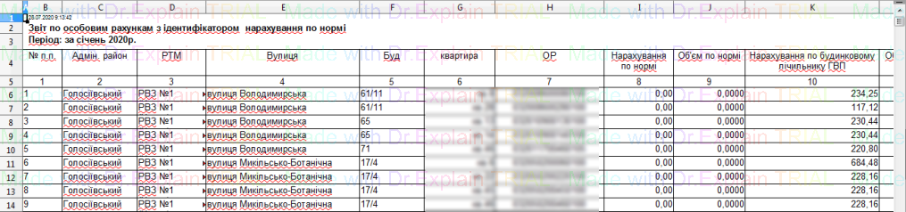 341 Звіт по особових рахунках щодо яких відбулися зміни опалювальної площі в певний період