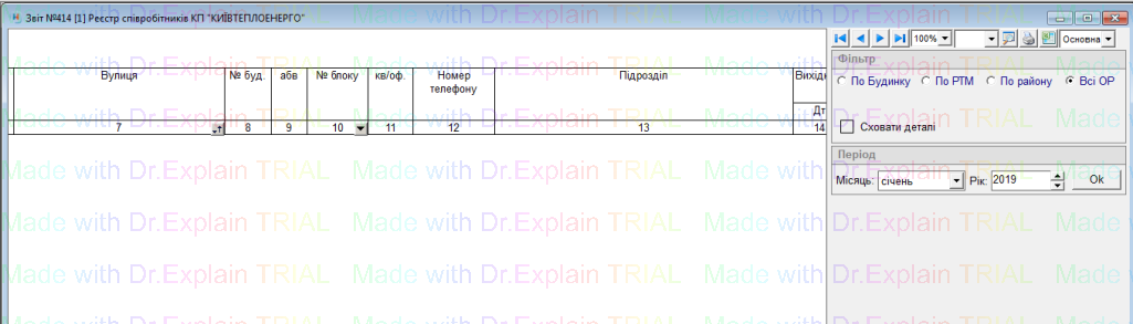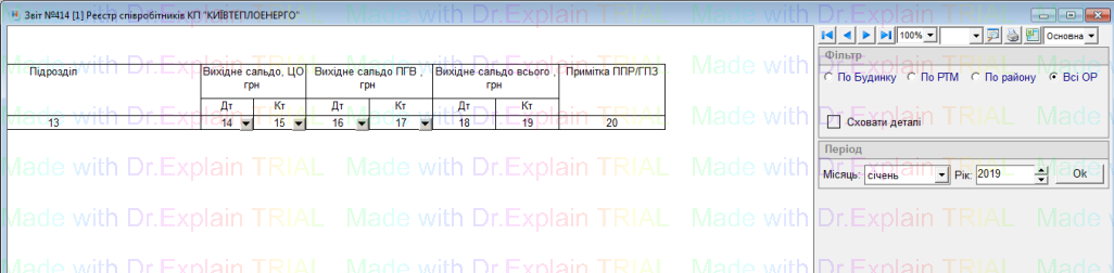 519 Звіт про нарахування за послугу з постачання теплової енергії по періодам