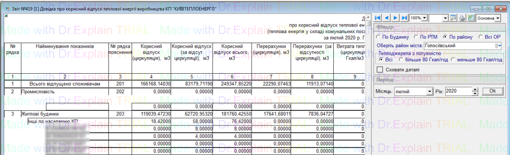 519 Звіт про нарахування за послугу з постачання теплової енергії по періодам