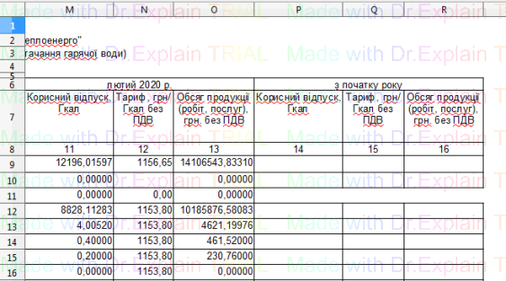 522 Звіт про нарахування за теплову енергію / послугу з постачання теплової енергії з ПДВ