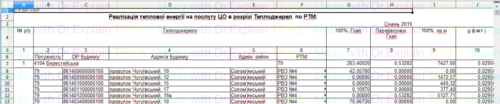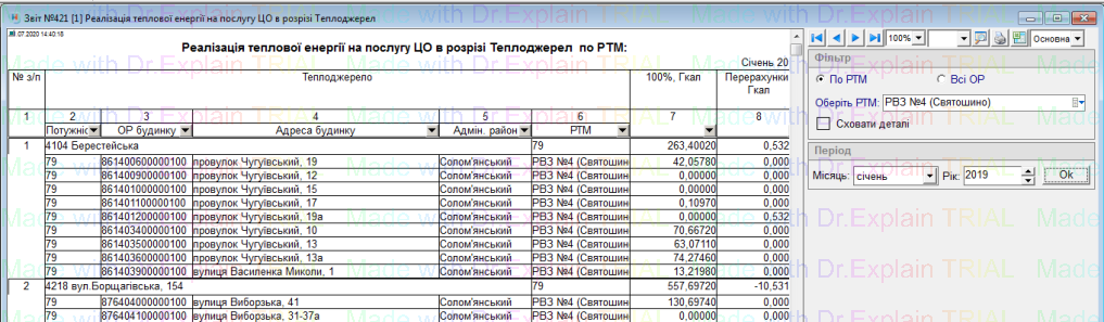 519 Звіт про нарахування за послугу з постачання теплової енергії по періодам